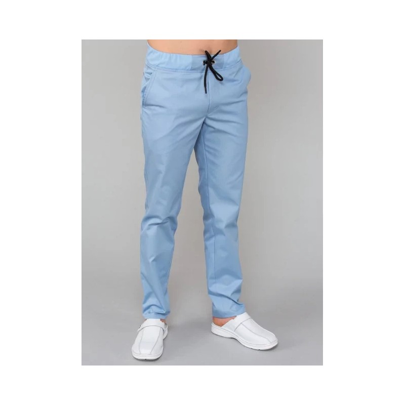 Spodnie o prostych nogawkach, dwie kieszenie z przodu i dwie naszywane na tyle. U góry wykończone dzianinowym paskiem z gumą. Dodatkowa regulacja obwodu pasa za pomocą sznureczka. Spodnie mają rozporek z zamkiem, nie mają jednak guzika- ubiera się je jak spodnie dresowe. Bardzo komfortowe w noszeniu.